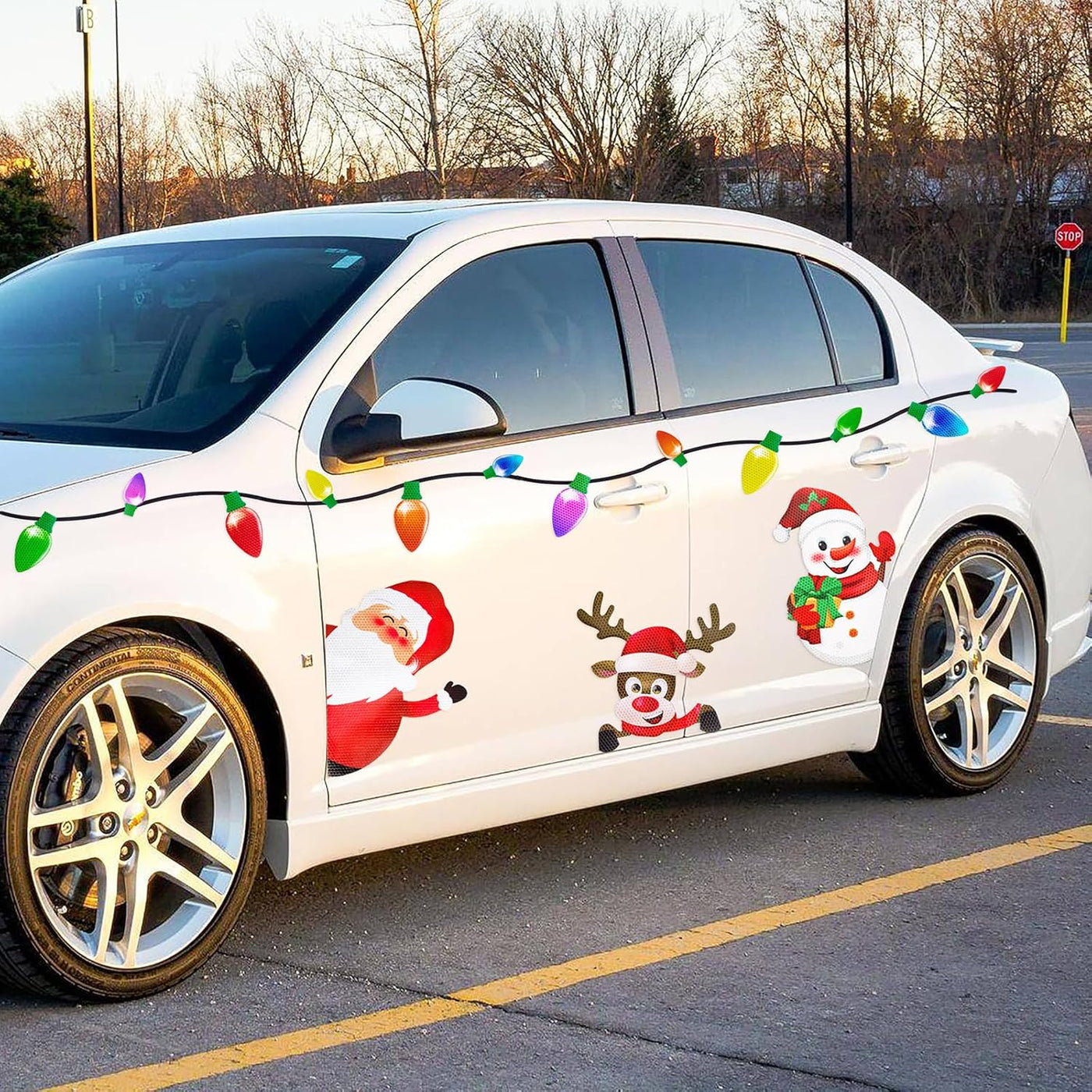 Reflective Design: Made of reflective film with a magnetic back; these Christmas car magnets appear illuminated when hit by headlights, adding a festive glow to your car under sunlight or light