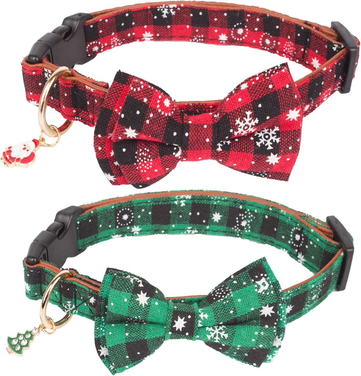 ADOGGYGO Christmas Dog Collar with Bow Tie Adjustable