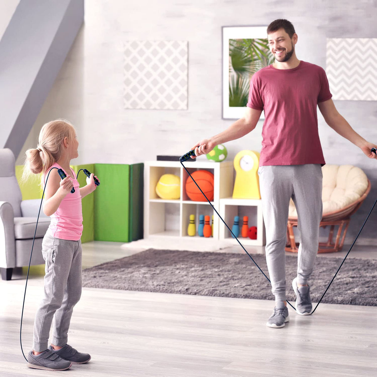 Durable & Adjustable Rope / / This jump rope is made of steel wires that are coated with strong PVC material, making it durable even after a long time exercising. Its adjustable length design enables you to customize the length according to your needs, making it suitable for everyone, no matter for kids or adults.