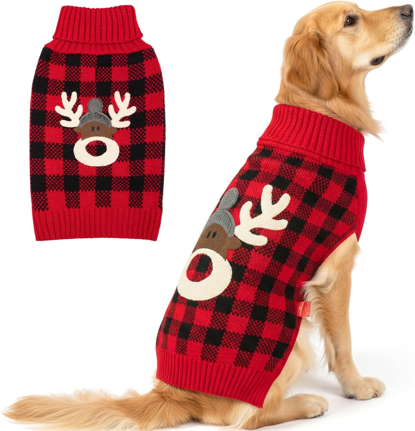 KYEESE Dog Christmas Sweater with Reindeer Pattern