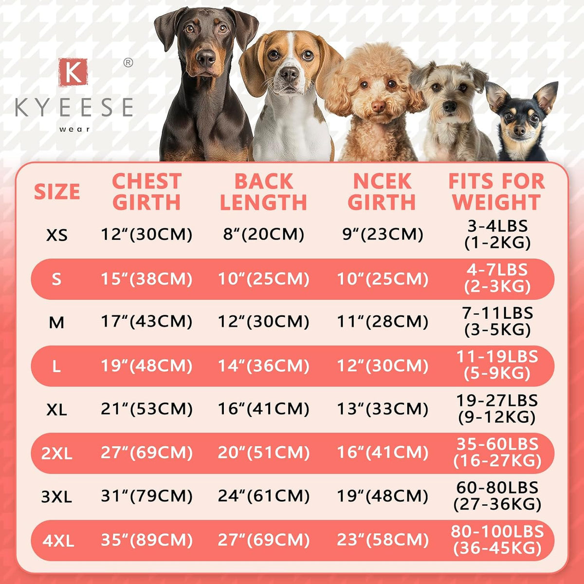 About Size: Please don't choose the size based on your usual size, measure your pet's chest girth in priority, and back length, get the right size based on KYEESE size chart. If your pet is still growing, or your pet has a stout body, please do size up