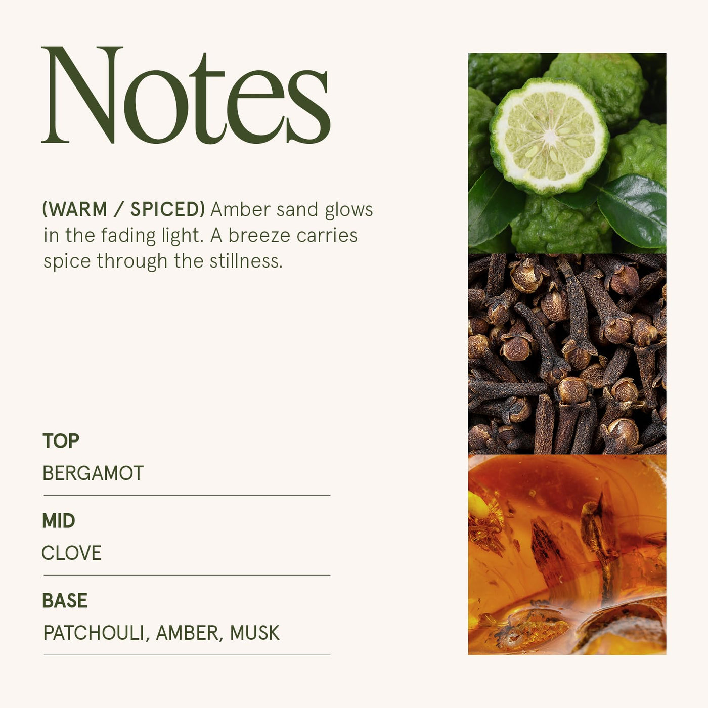 Sahara Amber: Experience a luxurious autumn fragrance with crisp bergamot and succulent apple, embraced by spicy cinnamon and comforting heliotrope, lingering with patchouli, vanilla, and amber—perfect for cozy fall evenings and seasonal home ambiance.