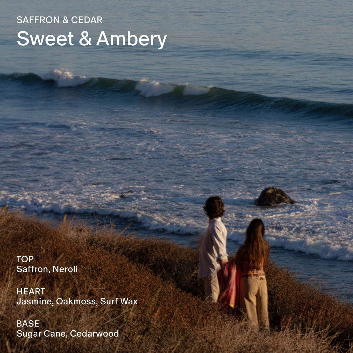 Saffron & Cedar — This scent is warm, complex, and delicately sweet. It’s like taking a drive up the Pacific Coast where the ocean meets mountains.