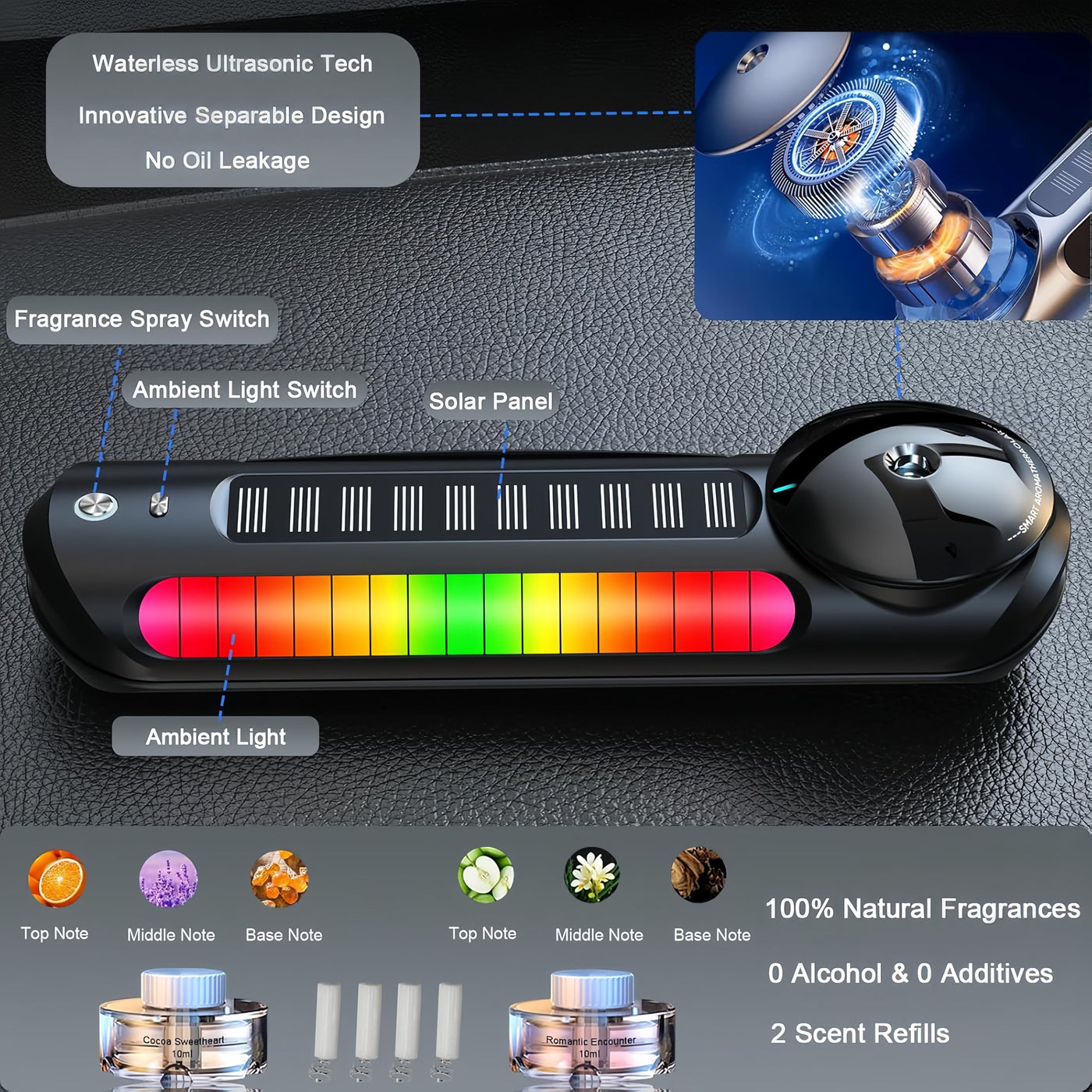 【𝐒𝐨𝐥𝐚𝐫 & 𝐋𝐢𝐭𝐡𝐢𝐮𝐦 𝐁𝐚𝐭𝐭𝐞𝐫𝐲 𝐂𝐡𝐚𝐫𝐠𝐢𝐧𝐠】: The car freshener is equipped with a built-in 3V solar panel, 𝙖𝙡𝙡𝙤𝙬𝙞𝙣𝙜 𝙩𝙝𝙚 𝙖𝙧𝙤𝙢𝙖 𝙛𝙪𝙣𝙘𝙩𝙞𝙤𝙣 𝙩𝙤 𝙤𝙥𝙚𝙧𝙖𝙩𝙚 𝙞𝙣𝙙𝙚𝙛𝙞𝙣𝙞𝙩𝙚𝙡𝙮 𝙬𝙞𝙩𝙝𝙤𝙪𝙩 𝙩𝙝𝙚 𝙣𝙚𝙚𝙙 𝙛𝙤𝙧 𝙧𝙚𝙘𝙝𝙖𝙧𝙜𝙞𝙣𝙜 . It also features a high-temperature resistant lithium battery with long battery life. Additionally, the pickup light creates a vibrant atmosphere, enhancing your car's style.(𝙏𝙮𝙥𝙚-𝘾 𝙘𝙝𝙖𝙧𝙜𝙞𝙣𝙜 𝙞𝙨 𝙥𝙧𝙚𝙛𝙚𝙧𝙧𝙚𝙙 𝙬𝙝𝙚𝙣 𝙪𝙨𝙞𝙣𝙜 𝙩𝙝𝙚 𝙥𝙞𝙘𝙠𝙪𝙥 𝙡𝙞𝙜𝙝𝙩 𝙩𝙤 𝙥𝙧𝙚𝙫𝙚𝙣𝙩 𝙚𝙭𝙘𝙚𝙨𝙨𝙞𝙫𝙚 𝙥𝙤𝙬𝙚𝙧 𝙘𝙤𝙣𝙨𝙪𝙢𝙥𝙩𝙞𝙤𝙣)
