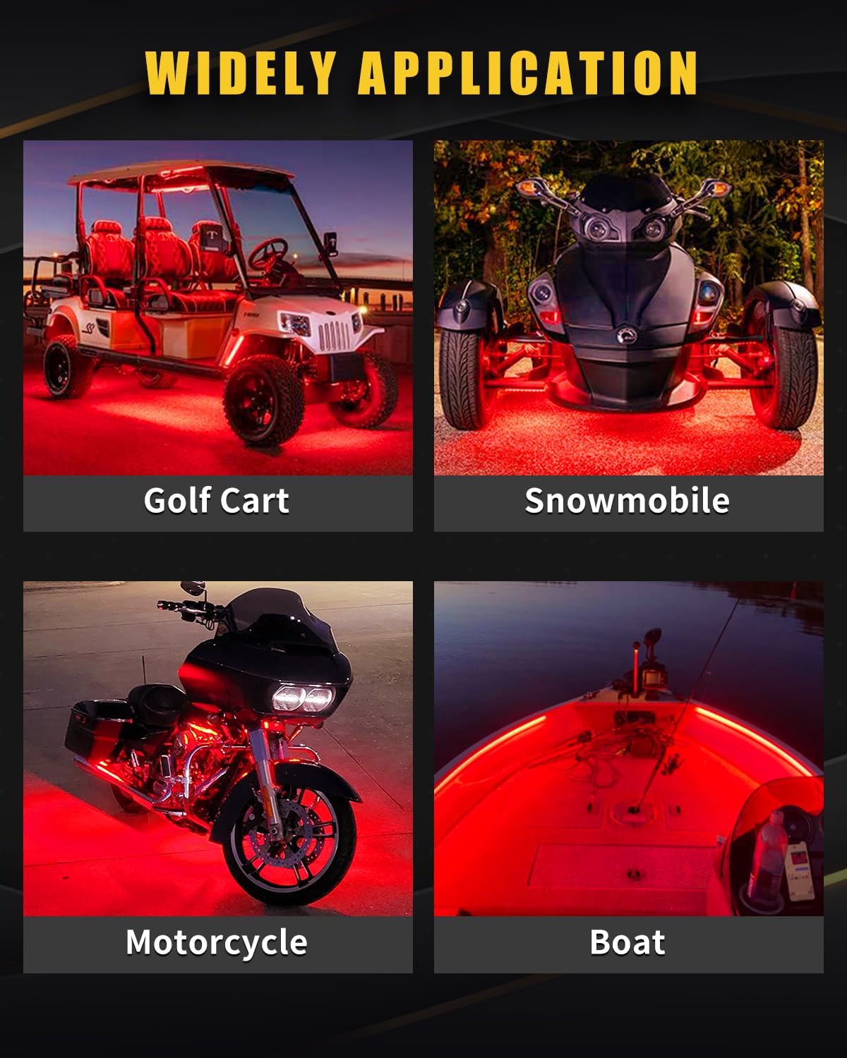 2. Applicable for automobile,boat,golf cart and bicycle decoration, border or contour lighting.