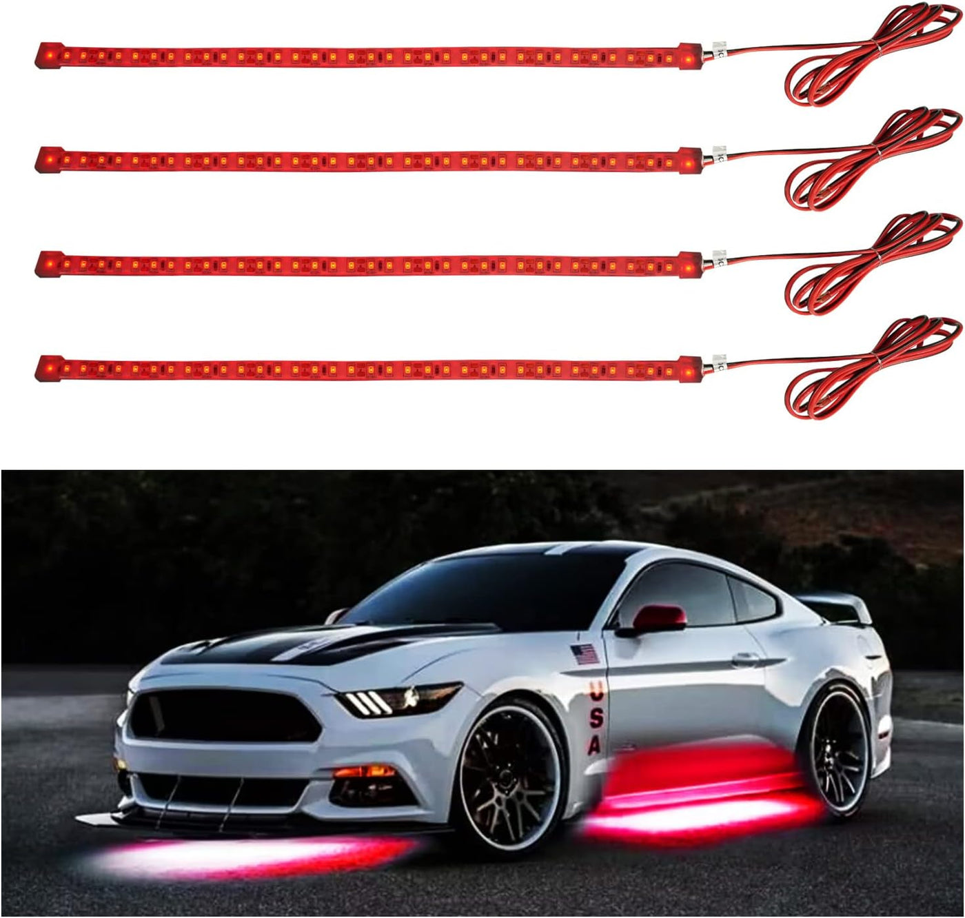 - 【Package Include】4pcs X 30cm 36SMD 12inch Red car underbody led strip light.
